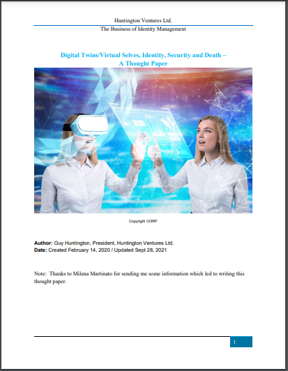 Digital Twins/Virtual Selves, Identity, Security and Death – A Thought Paper